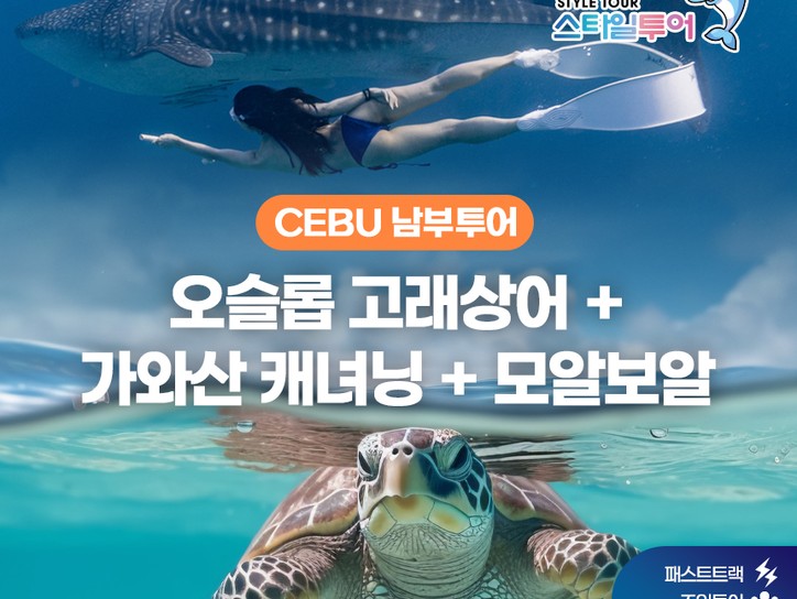 [세부남부투어/오캐모팩] 오슬롭 고래상어 패스트트랙+투말록폭포+가와산캐녀닝+모알보알